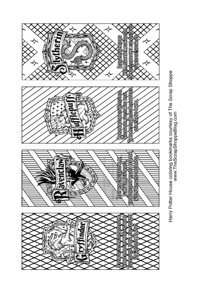 Harry potter bookmark coloring page : harry potter house coloring bookmarks » Bookmarks hogwarts scrap shoppe thescrapshoppeblog